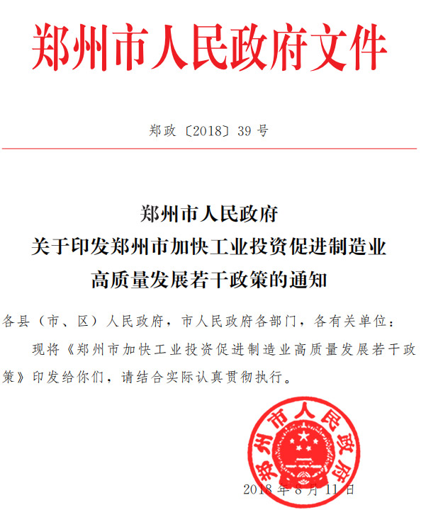 政府在不斷督導企業進行改造升級的過程,也在不斷為企業考慮,出臺補貼政策。8月份,鄭州市出臺了加快工業投資促進制造業高質量發展若干政策
